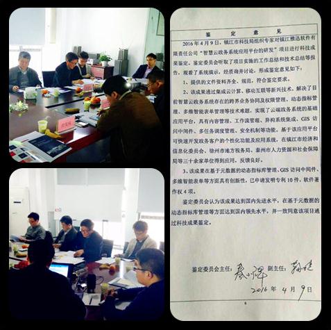 2016年4月9日,鎮(zhèn)江市科技局組織專家對我公司完成的“智慧云政務(wù)系統(tǒng)應(yīng)用平臺”項目進行科技成果鑒定。鑒定委員會在審閱了相關(guān)文件資料,觀看了系統(tǒng)演示,經(jīng)質(zhì)疑討論后,對公司的項目成果給予高度肯定。